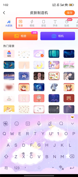 3、在【皮肤制造机】里,有背景、模板、按钮等功能,我们可以尽情发挥创意哦。