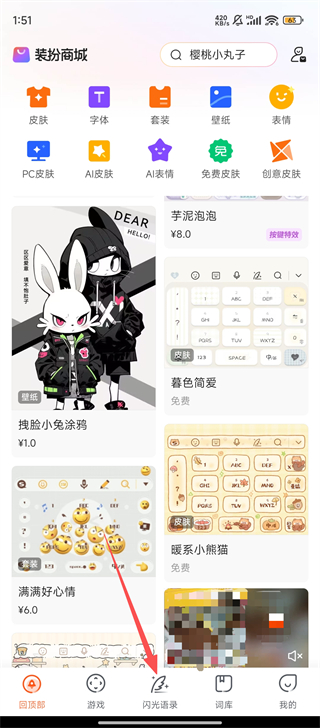 1、我们先打开软件的【装扮商城】,找到底部的【闪光语录】按钮,点击它就能进入语录页面啦。