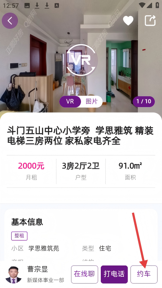 2、看房体系多维构建:涵盖图片浏览、视频看房、线上咨询等形式,配套一键约车预约实地看房的专车接送服务。