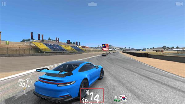 3、沿赛道直道段提升车速,关注排名【第14-49英里/小时】,尝试缩小与前车的距离。