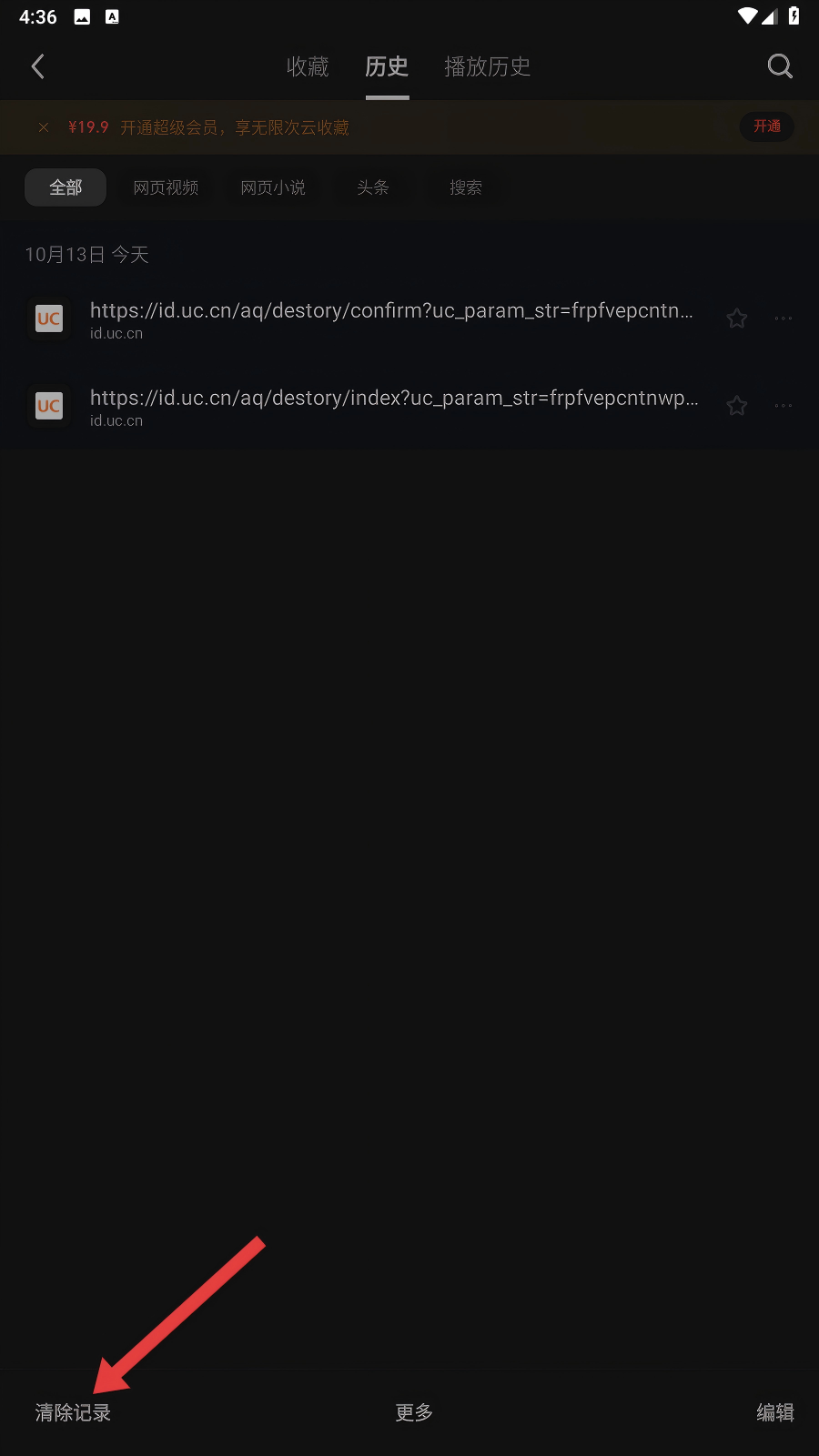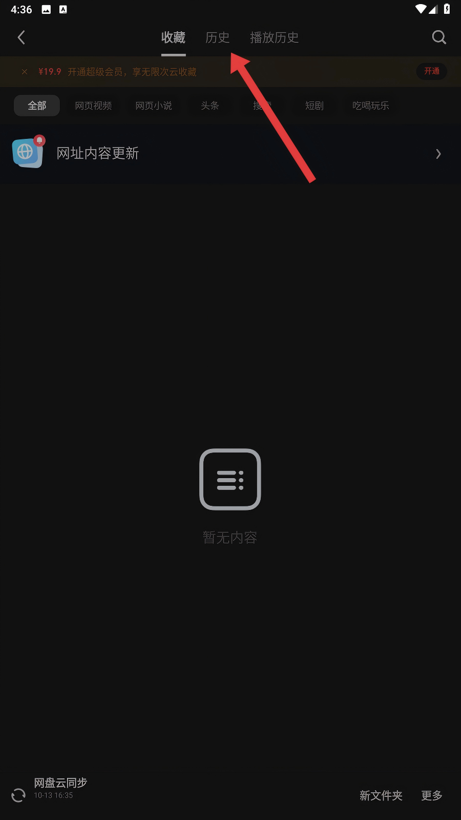 3、进入页面后,点击顶部【历史】标签,查看浏览历史内容。