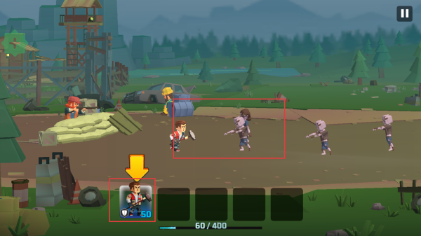 4、点击下方显示的角色头像,操控该角色与僵尸战斗,推进当前关卡进度。