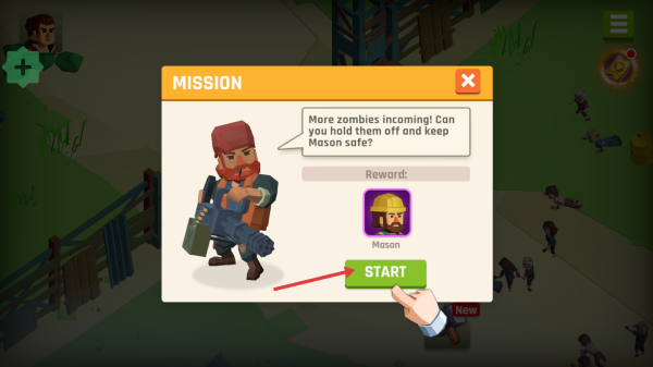 2、跟随指引点击对应图标,指挥角色抵御来袭的僵尸,推进当前的游戏进程。