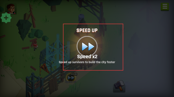 1、点击【SPEED-UP】按钮开启加速,能让幸存者加快建造城市的速度。