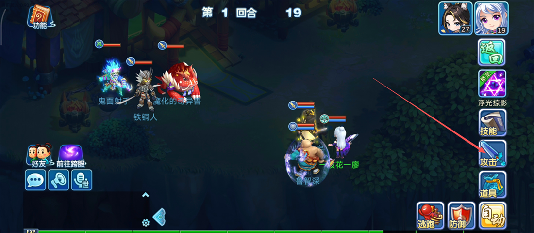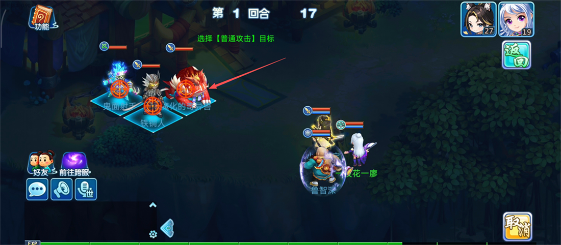 4、选择【普通攻击】目标时,瞄准像魔化的奇异兽这样的敌人,精准打击啦。