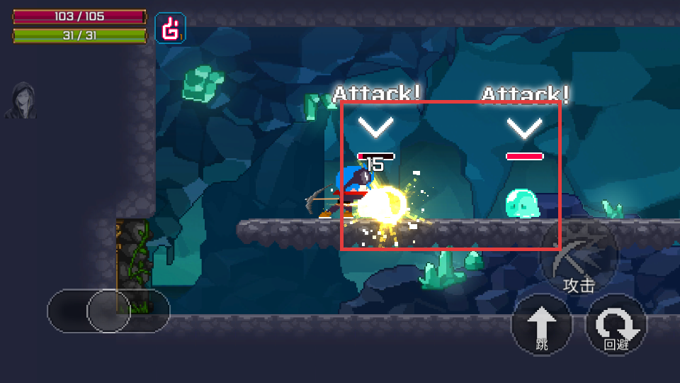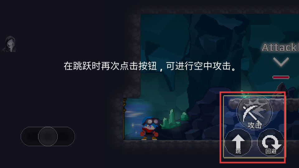 3、熟悉右侧【攻击】【跳】【回避】按钮,提升战斗能力。