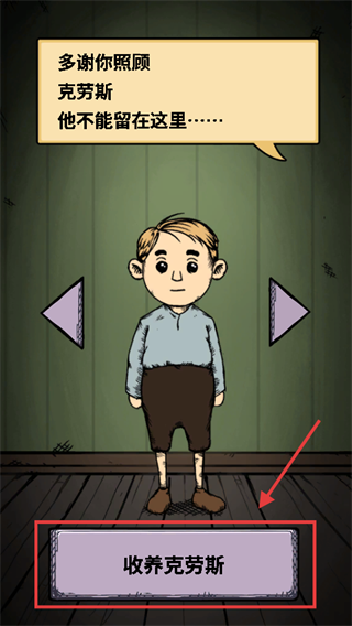 1、点击【收养克劳斯】按钮,开启抚养剧情,正式进入模拟养成阶段,开启孩子的成长之旅。