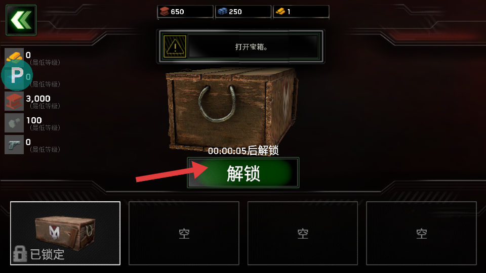 3、点击【解锁】,打开宝箱,获取资源或奖励,增强实力。