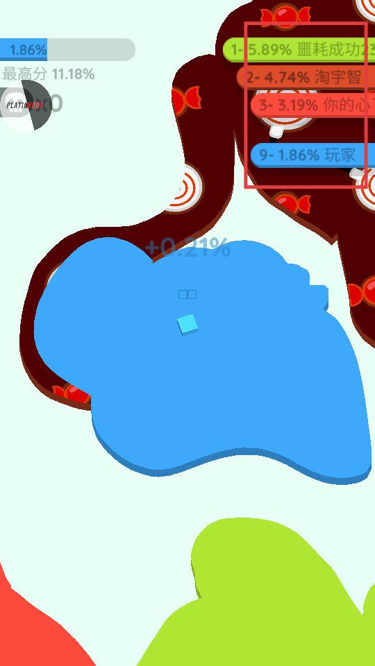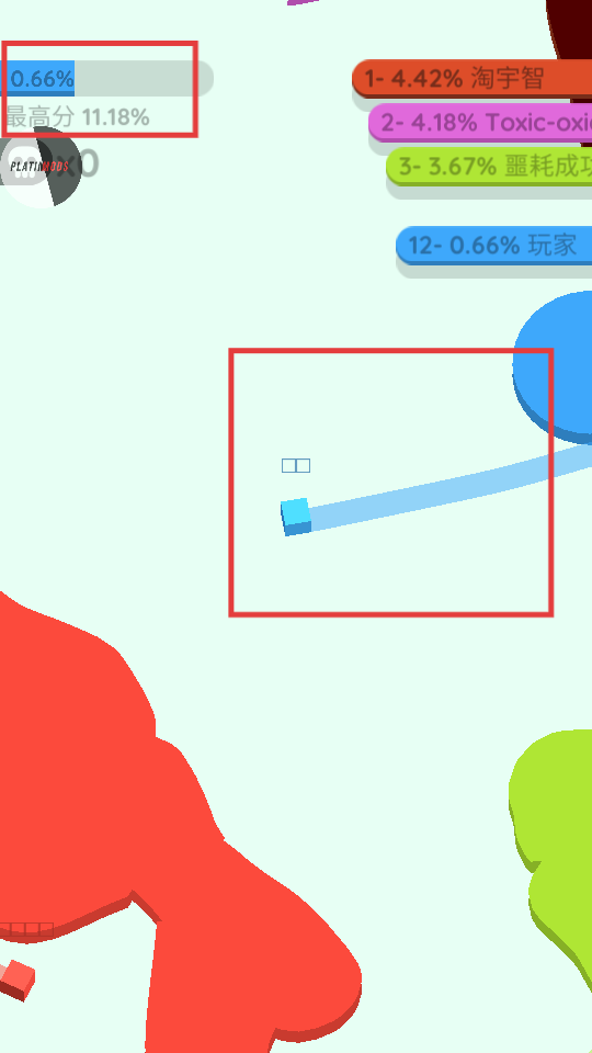 2、注意自己的占比,操控蓝色方块画线占地,逐步扩大自己的地盘。