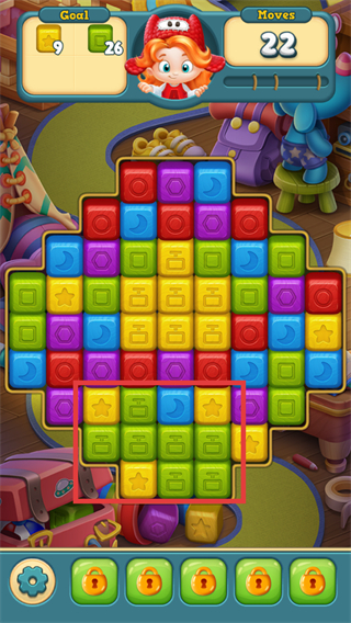 1、后期会出现需要特殊技巧才能解开的谜题,比如要先破坏冰块障碍才能接触到目标方块,或者要在限定步数内完成特定形状的消除。