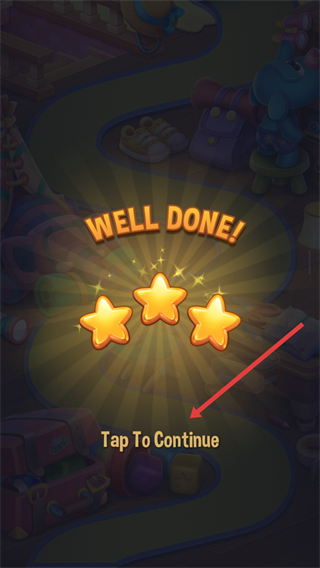 4、关卡完成后显示【WELLDONE!】,点击【TapToContinue】,获取三星评价并进入下一关。
