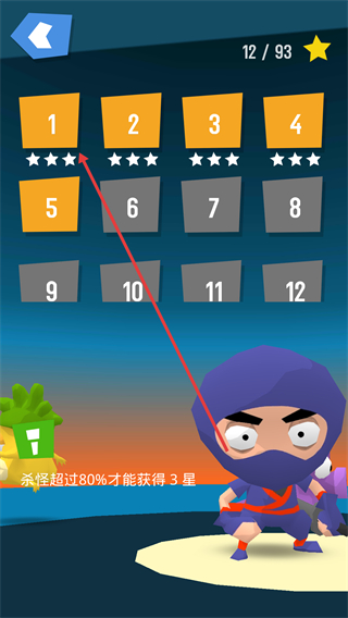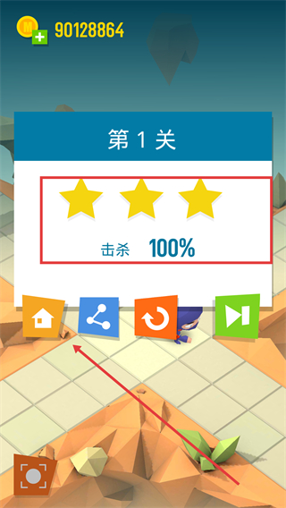 4、关卡完成后,若达成100%击杀获得3星评价,可返回主界面选择其他关卡继续挑战。