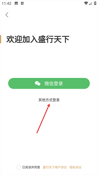 2、在登录界面,选择【其他方式登录】,切换至手机号验证登录页面。