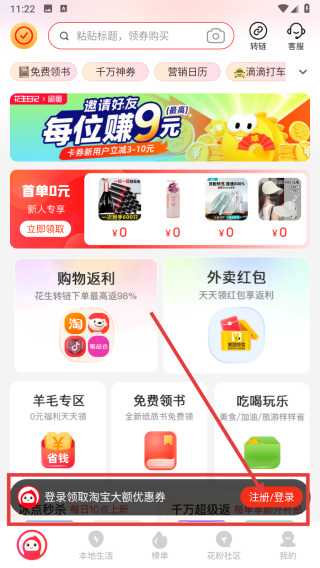 1、花生日记主要功能为:查找优惠少花钱,消费收益、邀请注册多生钱等。APP内栏目主要有9.9包邮,品牌闪购,新人免单福利,花生小店,每日爆款,拼团,信用卡,花粉社区,限时抢购等。
