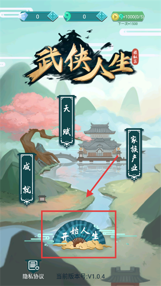 1、点击【开始人生】,开启武侠人生模拟,踏入江湖开启奇才养成的冒险之旅。