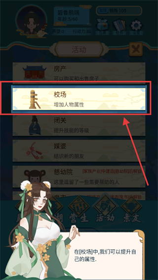 3、参与【校场】活动,可增加人物属性,提升角色战力,推动武侠成长进程。