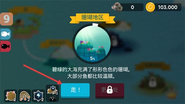 1、在地图界面选择【珊瑚地区】,点击【走!】按钮进入该区域,开启对应场景的捕鱼关卡。