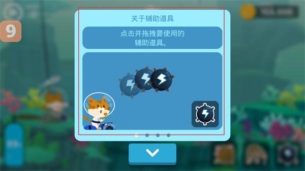 2、查看【关于辅助道具】的提示,点击并拖拽【闪电类道具】,可在捕鱼时使用辅助道具提升效率。