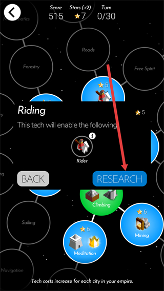 4、确认Riding科技的效果后,点击界面中的RESEARCH按钮。