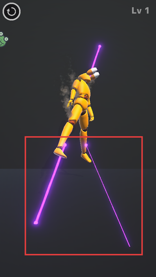 1、进入游戏,角色为黄色橡皮人,第一步如方框内画线将【橡皮人】头部连接至墙上。
