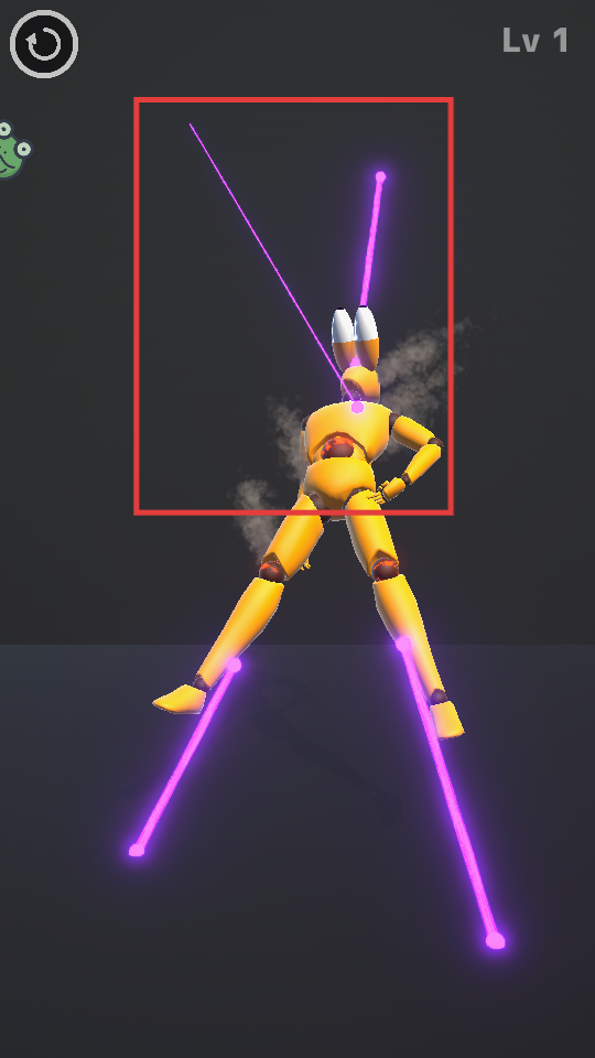 1、基础控制模式:用手指画出激光线连接到橡皮人身上,然后拖动激光线就能随意拉伸和扭曲橡皮人的各个部位。