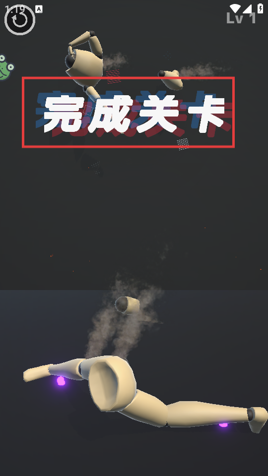 4、当成功将橡皮人破坏后,界面显示【完成关卡】,即可通关进入下一关。