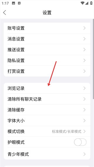 2、进入设置页面,找到并点击“浏览记录”选项。