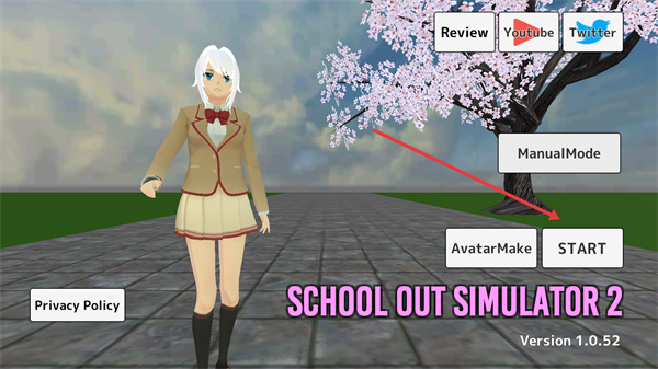 1、点击【START】进入游戏,也可通过【AvatarMake】自定义角色形象,打造个性化的校园角色。