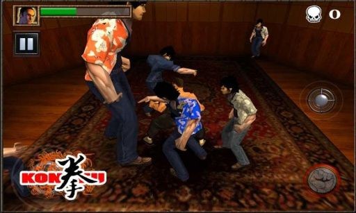 李小龙功夫秀采用模拟按键操作,左侧按键负责移动,右侧则是攻击和旋转视角。在遭遇敌人之前,我们得先让小龙哥做做准备活动,活动一下筋骨。在没进入战斗时主角的动作还是相当流畅的,跑步和挥拳的动作都迅速畅快,毫不拖沓。