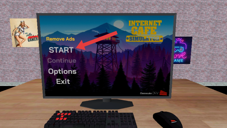 1、进入游戏时点击【START】,开启网吧经营之旅,可先了解界面功能,为后续经营做准备。