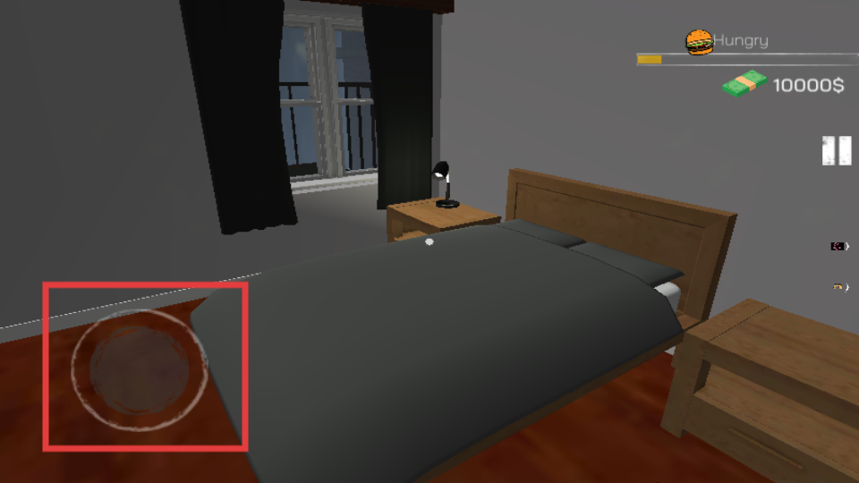2、在卧室中利用移动控件,熟悉角色移动操作,为外出经营网吧做好操作准备。