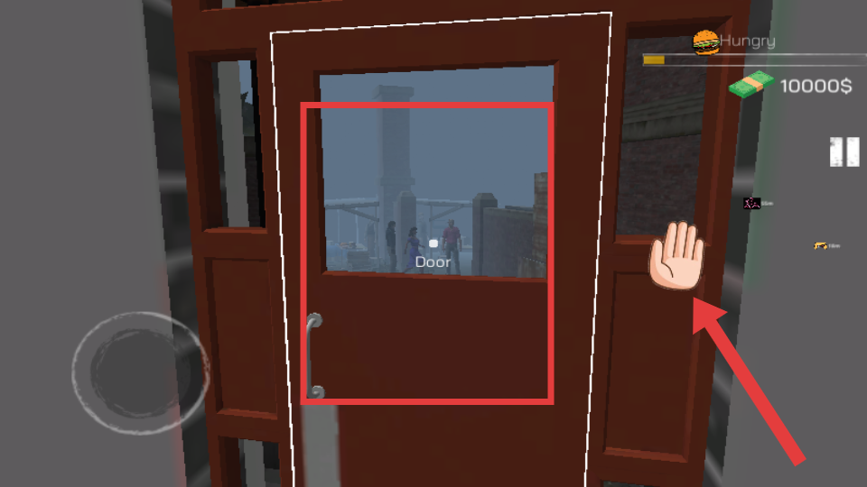 3、遇到门时,点击手掌图标开门,出门探索外界,寻找经营网吧的资源或机会。