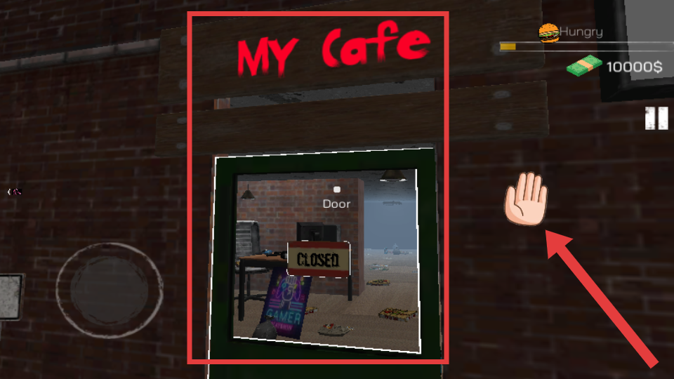 4、找到标有【My-Cafe】的网吧后,点击手掌图标进入,开始打理网吧,开展经营活动。