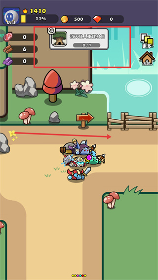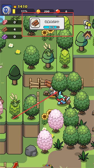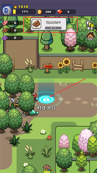 1、关注收集目标(如“收集木头5个”),在地图对应区域(如村庄入口附近)探索,通过砍伐树木等互动完成收集。