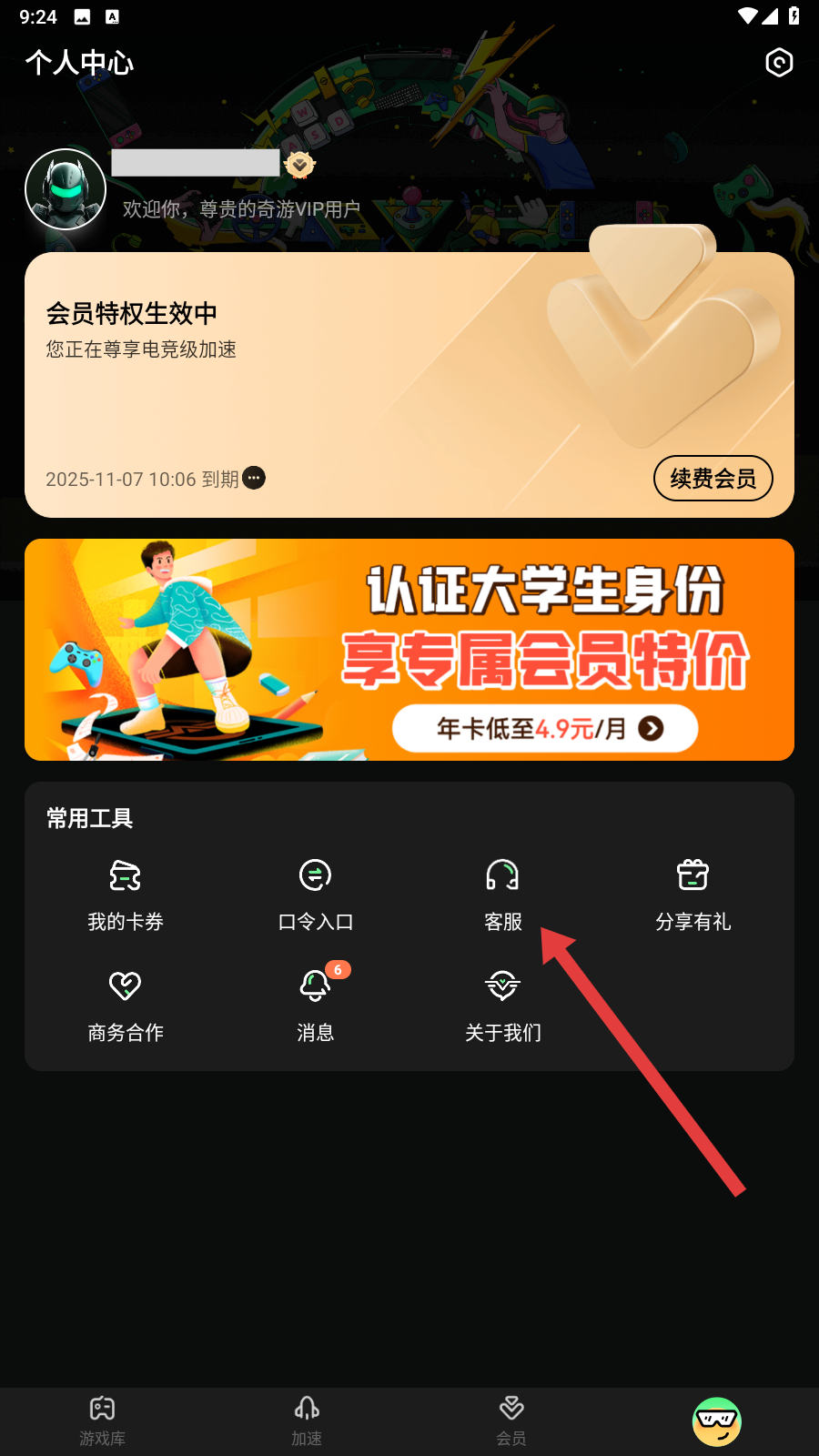 1、打开奇游加速器App,点击底部【我的】,这是联系客服的第一步呢。