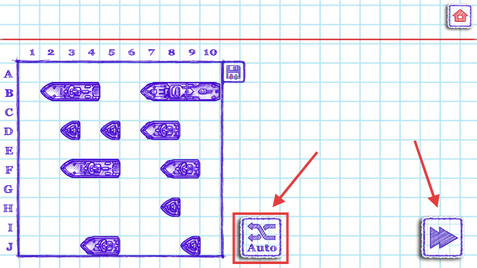 2、点击【Auto】按钮可自动布置舰队,快速完成战舰布局,节省手动规划时间,便于更快参战。