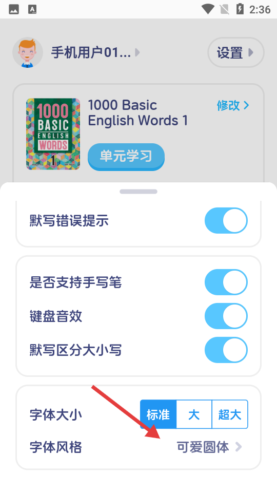 8.背单词首页设置,可以设置是否显示默写错误提示波浪线