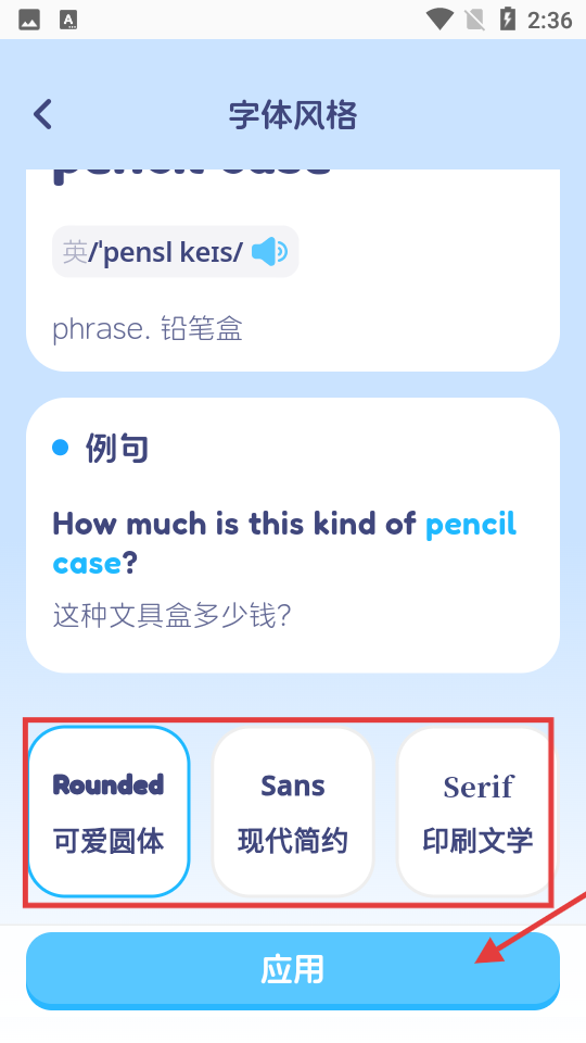 4、选择喜欢的字体,点击【应用】,完成字体风格设置。
