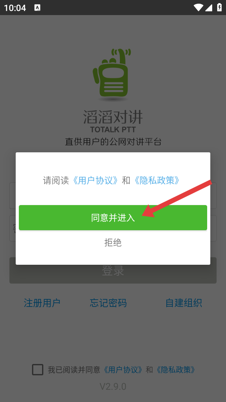 1、用户打开软件后,点击【同意并进入】即可进入登录界面。