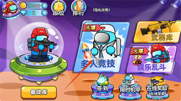 1、进入游戏后,选择【多人竞技】模式,开启对战,利用备战库装备提升战力,参与竞技对决。