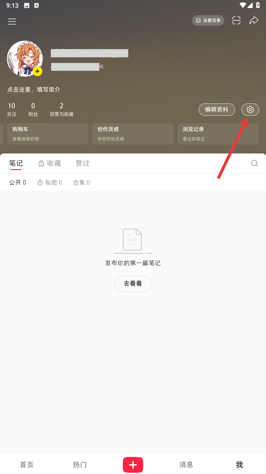 1、进入小红书【我】的页面后,点击右上方齿轮状的【设置】图标,即可进入设置界面啦。