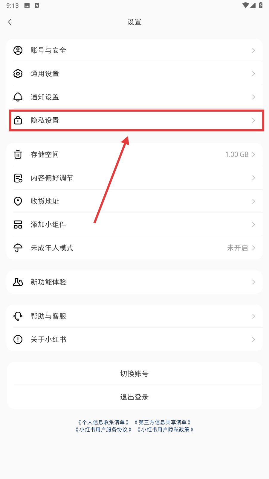 2、在设置界面里,我们找到并点击【隐私设置】选项,便能进入隐私相关的设置页面咯。