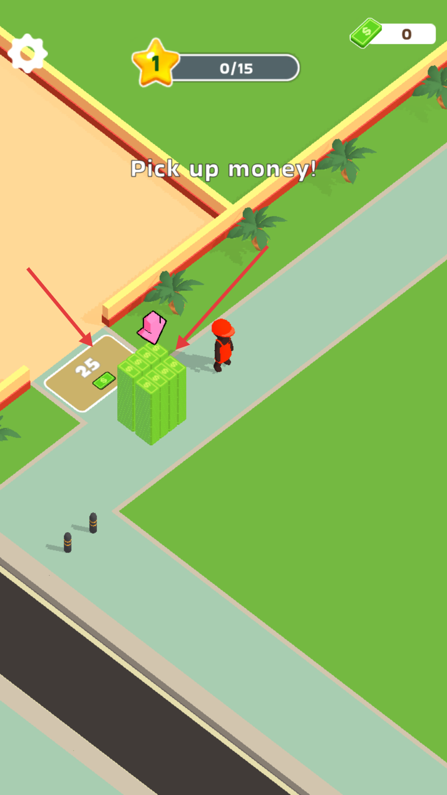 1、按照提示【Pickupmoney!】收集绿色钞票。