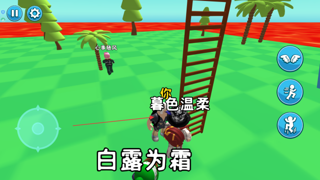 3、看到梯子等互动元素时,操控角色靠近,可尝试攀爬等操作,与场景中的其他玩家或元素互动。