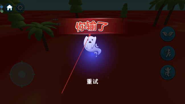 4、若游戏失败出现【你输了】提示,点击【重试】,总结失败经验,再次挑战,争取成功。