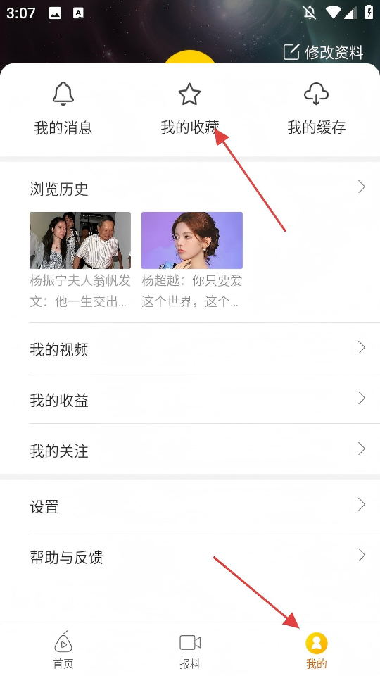 4、点击【我的收藏】,即可查看已收藏的视频。