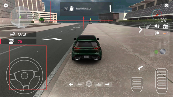 1、驾驶时可通过右侧功能栏调整车辆设置(如灯光、音效),同时关注左侧进度条,完成基础操作可获得积分奖励。