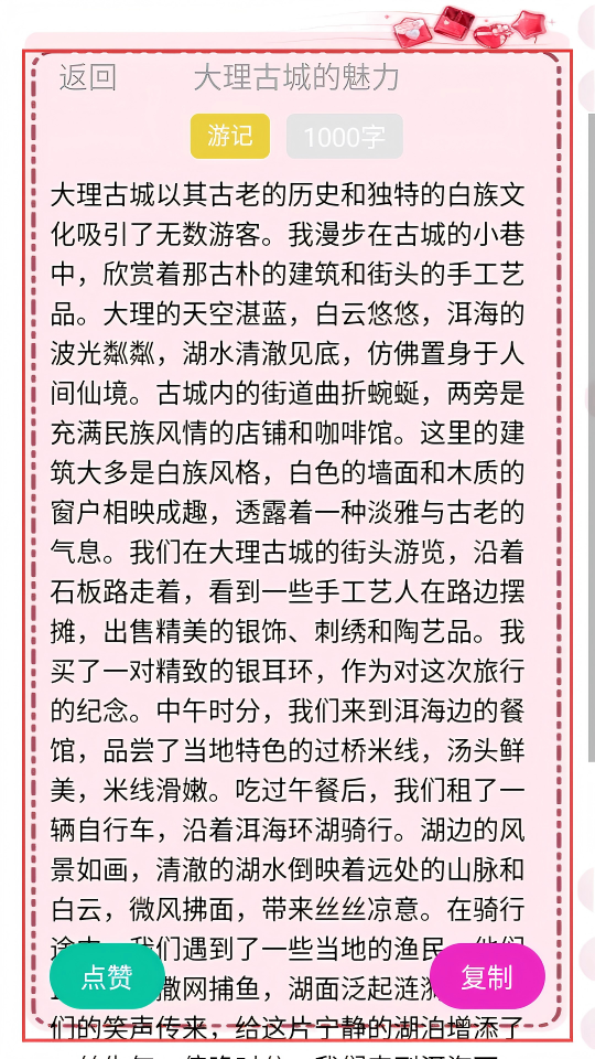 4、进入详情页,即可查看《大理古城的魅力》的完整游记内容。