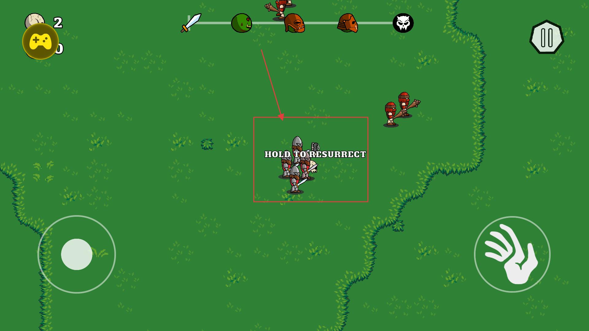 2、当军团单位阵亡时,界面会出现“按住复活”提示,长按对应区域可复活阵亡单位,维持军团规模以保持战斗优势。