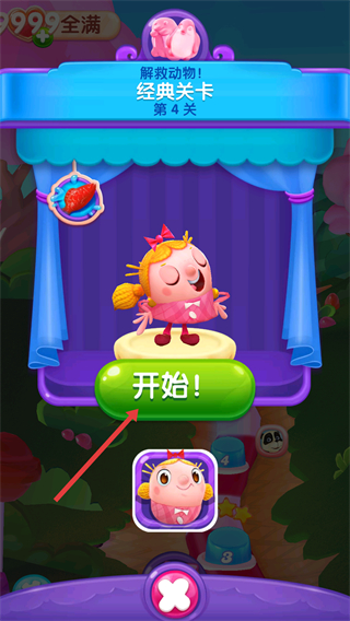 1、点击【开始!】按钮,进入经典关卡第4关的糖果消除任务。